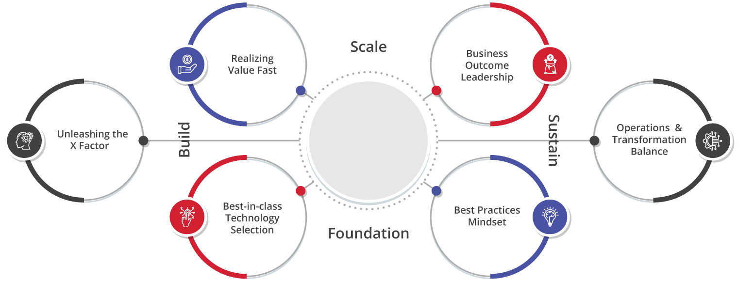 While transformative change is underway, it must be business as usual for the organization. And we know businesses are seeking to unlock value rapidly. We come in always-agile, always-on. As you shift tracks, accelerate, and grow.
