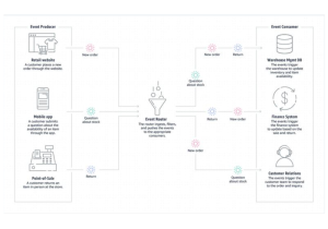 Below is an example of an EDA for an e-commerce website. It showcases 3 major Event Producers and the events they organize. An Event Router collects and filters these events before sending them to one or more Event Consumers. This architecture enables the website to handle updates from numerous sources during peak demand periods, guaranteeing the app’s stability without crashing or over-provisioning resources.