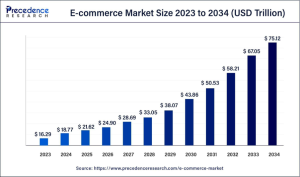 The global e-commerce market was valued at $18.77 trillion in 2024 and is projected to attain a value of $75.12 trillion by 2034, growing at a CAGR of 14.9%. Such exponential growth underscores the ever-growing relevance of digital commerce worldwide.